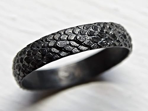 Amazon Com Dragon Scale Ring Silver Feather Ring Medieval Wedding Band Black Silver Pagan Wedding Ring Snake Skin Ring Black Silver Dragon Ring Handmade