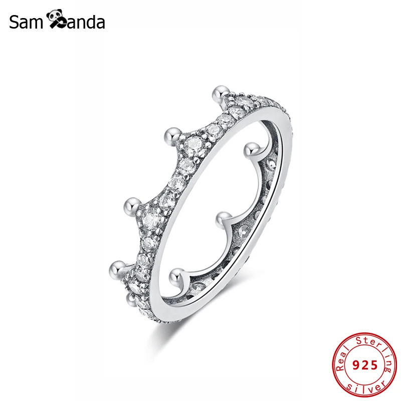 Yeni Orijinal 100 925 Ayar Gumus Yuzuk Buyulu Tac Istiflenebilir Yuzukler Vintage Temizle Cz Tiara Altin Renk Kadinlar Taki Icin Halkalar Aliexpress