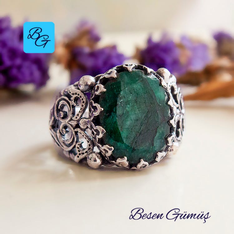 El Yapimi Kok Zumrut Tasli Ozel Tasarim Yuzuk Orijinal Gumusbox Kalitesi Ile Ucretsiz Kargo