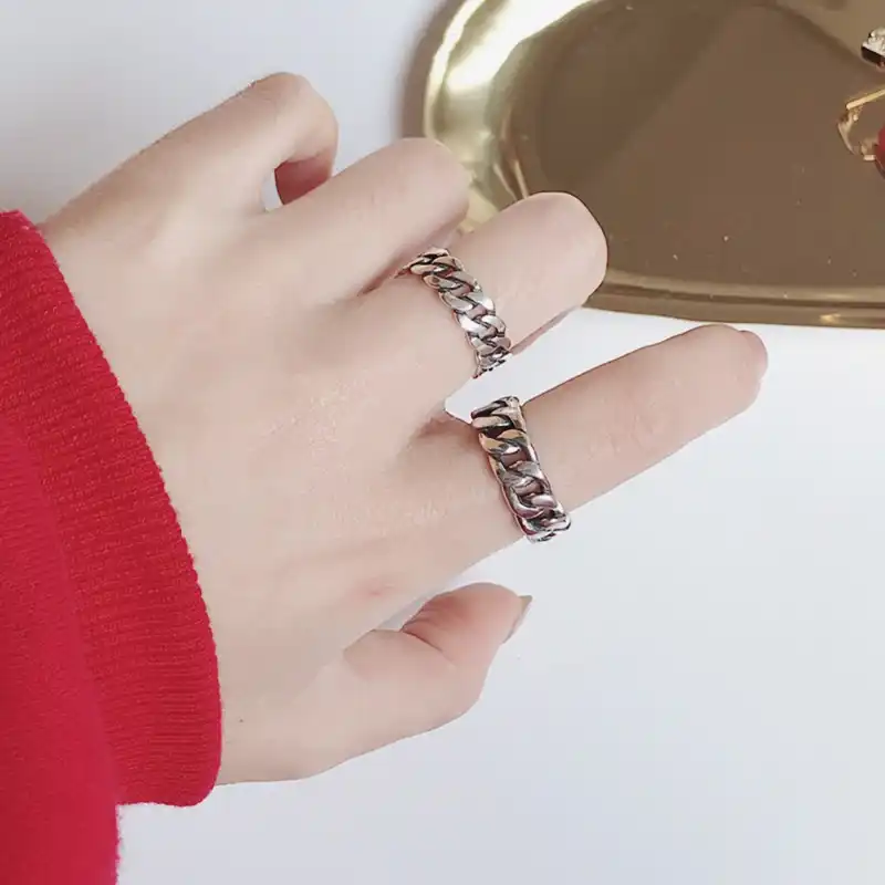 Louleur 925 Ayar Gumus Genis Zincir Yuzukler Gumus Vintage Vahsi Kare Serit Zincir Acik Yuzuk Kadinlar Icin Yeni Guzel Taki Hediye Satin Almak Online Guzel Taki Usttoptan News